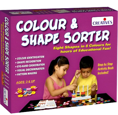 'Colour and Shape Sorter’ is a fun and interactive game to learn and reinforce the knowledge of geometric shapes and colours through different step-by-step activities. It has a plastic abacus stand and 64 beads of 8 important shapes and colours. The child may sort the beads (a) by shapes irrespective of the colours, and (b) by colours irrespective of the shapes. This way the child will learn and reinforce the knowledge of shapes and colours. The child may also use these beads to make different patterns. The game also has an Activity Book explaining various step-by-step activities that can be done using the abacus stand and the beads.