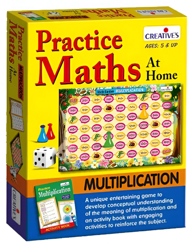 Players move through the ‘Play Board’ using the dice and practice their division by giving correct answer for the problem given on the space on which they land. The interactive activities given in the ‘Activity Book’ help children to do more practice at their own pace. Playing “Practice Math-Multiplication” is a perfect resource for children to develop their mathematical skills at home.
