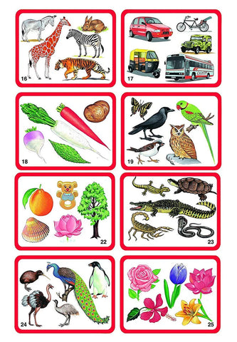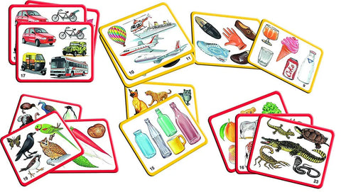 'What Does Not Belong?’ is an interactive way to improve observation and identification skills of the children. The game comprises 25 large and sturdy cards with a group of things or objects drawn on them. Each card has an object or a thing that does not belong to that group.