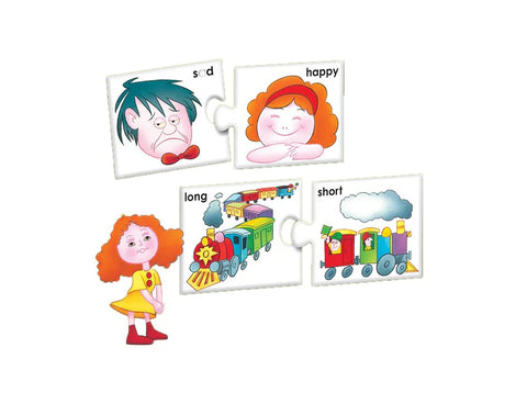 What is my opposite? is a self-correcting puzzle game having various activities to increase language skills of the children. It contains 28 pairs of colourful self-correcting match-ups and an 'Activity Guide'.