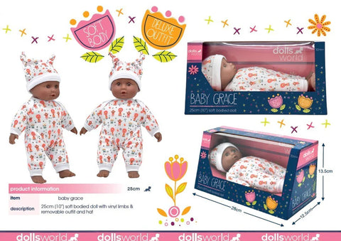 The Dollsworld Deluxe Bathable Little Poppet Doll is a charming and interactive toy. This delightful doll features an adorable baby doll with an outfit and matching headband,with lifelike details that add to it's charm. The set includes a beautifully crafted doll, with unique facial expressions and features. The doll is designed to resemble a cute little infant, making it the perfect companion for nurturing play.