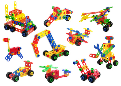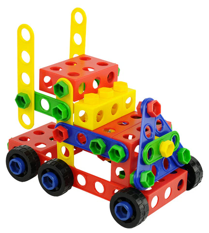 This Junior Engineer Building set will help kids build fine motor skills, hand-eye coordination, imagination and enhance creativity while keeping them entertained for hours, Design and build trucks, helicopters, robots, shapes, animals and much more with this wonderful Junior Engineer set. Perfectly sized for small hands, children can connect the chunky bolts, wheels, and joints. Teach children basic construction skills with these perfectly sized pieces for small hands with easy-fit connection for kids to snap together and take apart.