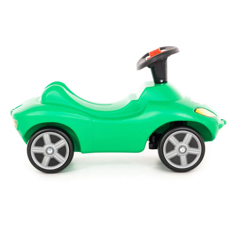 The wide, easy-grip steering wheel moves the wheels smoothly in the right direction. And if someone is in the way, you can honk at will.