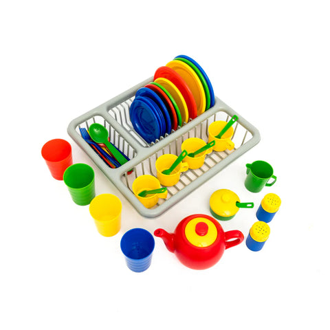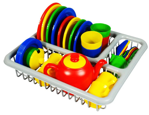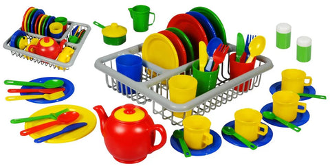 Pretend Play Kids Tea & Dinner Party Set with Drainer Rack - 43 Pieces Boxed