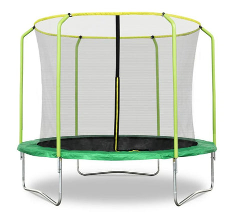 Trampoline is built with a durable, heavy steel frame. The Trampoline has a double thick padded spring cover and safety net enclosure. This trampoline with safety net enclosure is the perfect outdoor addition for any family home! Robust galvanized steel frame, quick and easy to assemble. "L" zip door, opens from inside and outside the enclosure. PVC padding and PE Mesh with high UV resistant performance. Feet height - 70cm.