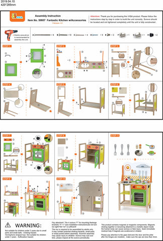 Viga Fantastic Wooden Toy Kitchen W/Accessories