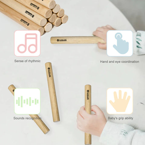 Claves encourage children to be creative and learn the basics of music such as counting the beat and keeping in time. Playing claves allow children to focus on their attention, it makes the children aware when they can play or when pauses are important. When played in a group this helps with communication skills they are an easy introduction to music and its basics.