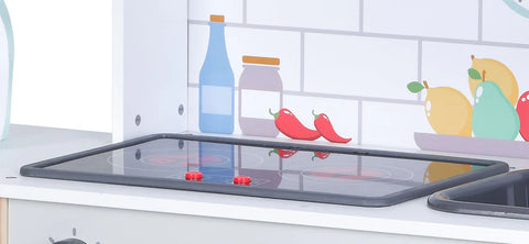 The battery-powered stove with realistic light and sound effects greatly enhances the playtime experience.