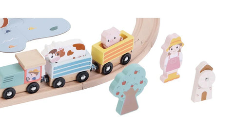 What's in the Box: 1 x 34 piece wooden toy farm train set