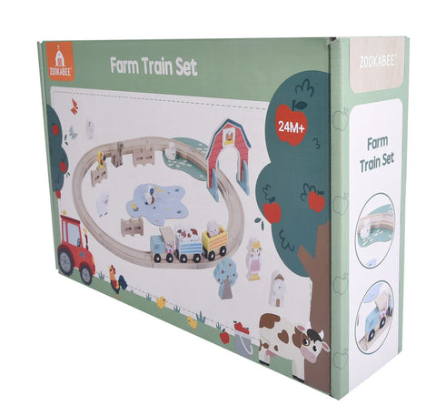 Zookabee Wooden Farm Train Set With Accessories - 34 Piece