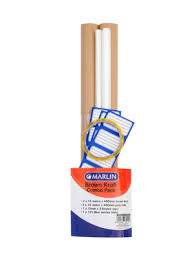 - Marlin Book Cover Pre-cut Brown Kraft Combo 17pc (5 x Slip On Covers, 5 x Precut covers, 1 x Stationery Tape 12mm x 20m x 38micron, 6 x Blue Border Labels)