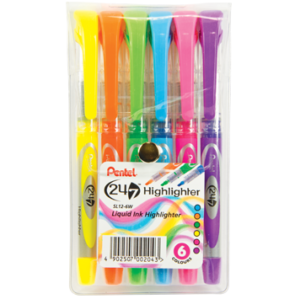- 4mm Multi-purpose Chisel Tip Liquid Highlighter 24/7 Wallet of 6- Assorted