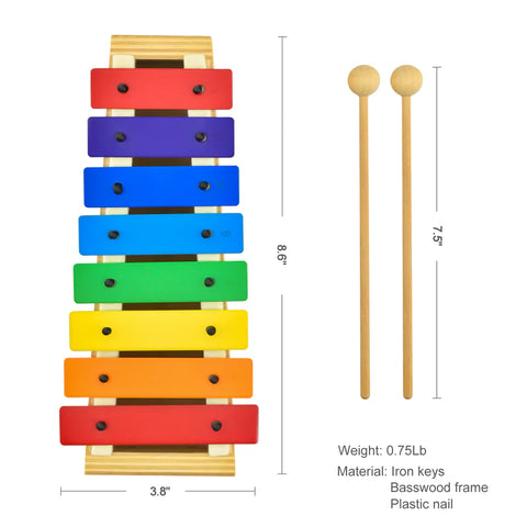 The Xylophone tone sounds are very melodious when you knock it. And each piece of metal you knock is a different tone. Can Inspire children's talent for music. Bright colours increase the kids sensitivity to colours. Easy to learn, can help to develop your kid's musical talents and wisdom.